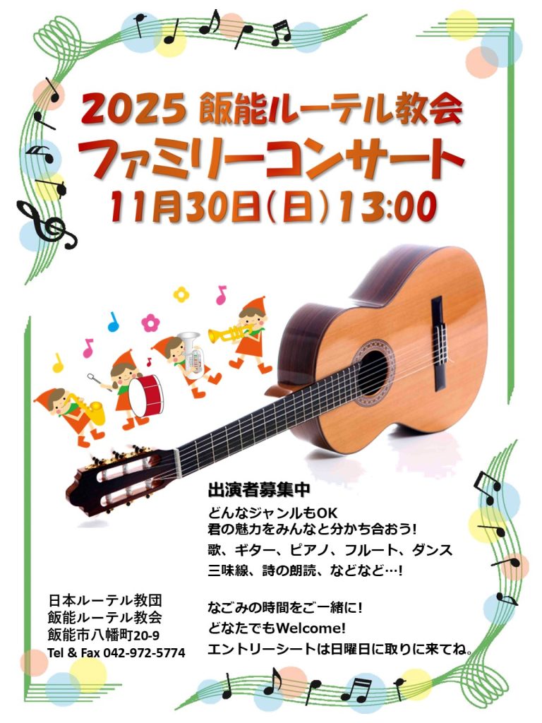飯能ルーテル教会は、皆様のお越しを心より歓迎します。日曜日の朝のひと時に聖書の御言葉に耳を傾け、祈り、感謝の讃美を捧げて、主イエス様とともに歩み始めてみませんか!